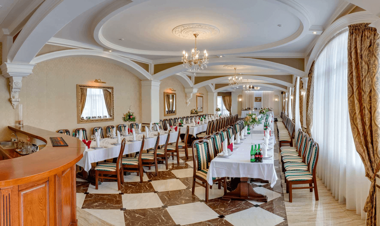 Виконаний у розкішному класичному стилі, комфортно розмістить до 120 осіб для проведення ваших пам’ятних подій. Вишукана кухня з великим вибором страв , відмінне обслуговування, музичний супровід, дозволить Вам поринути в атмосферу свята! Наш персонал також подбає про усі святкові дрібнички, та зробить усе для максимального комфорту ваших гостей.