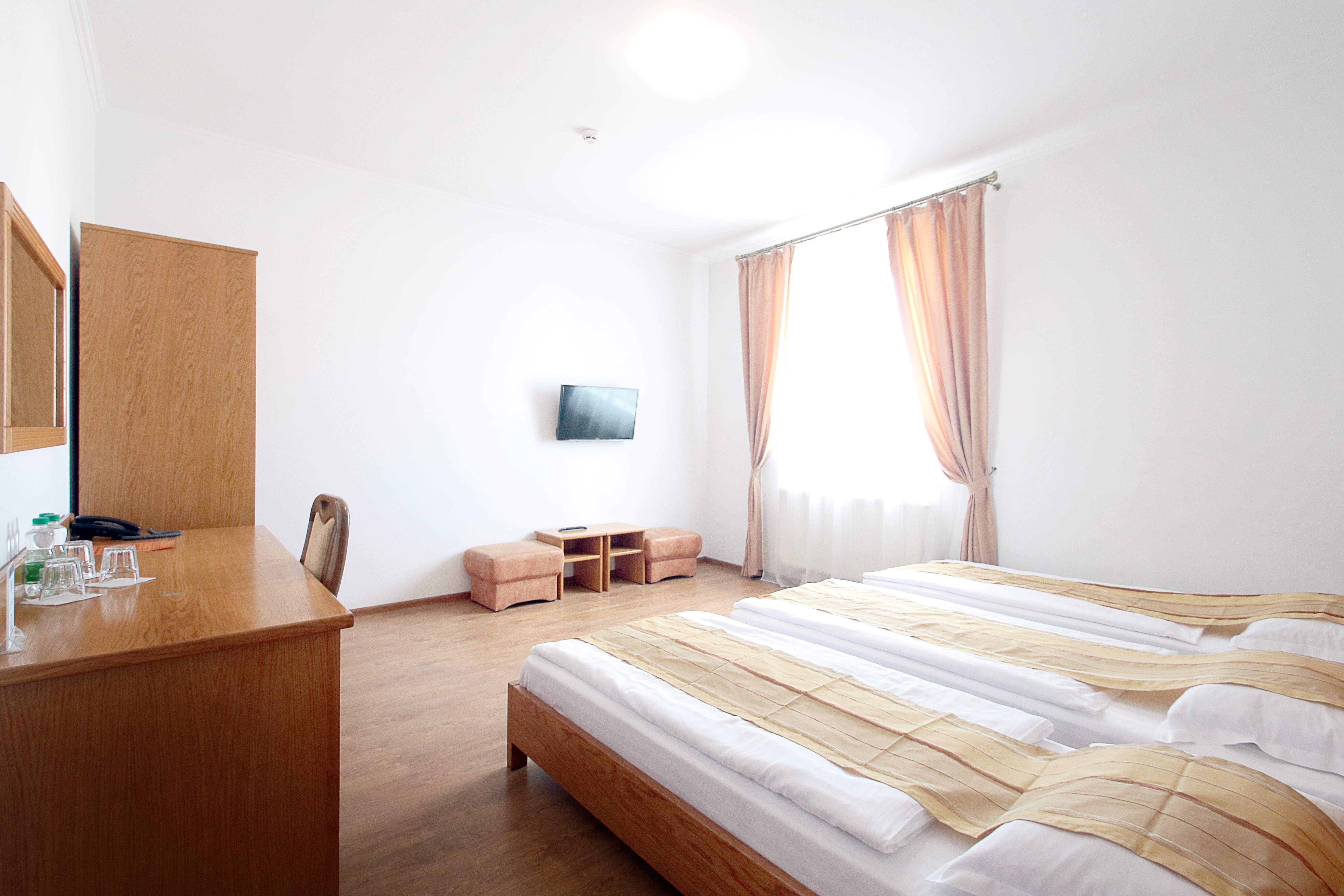 Комплектація Номеру: Однокімнатний номер, три односпальних ліжка, стіл, два пуфа, одне